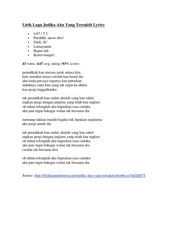 Lirik Lagu Judika Aku Yang Tersakiti Lyrics from imgv2-2-f.scribdassets.com List download lagu lagu aku tak ingin engkau pergi (03:56 min) mp3 link, last update ju. Download lagu mp3 & video: Aku yang tak pernah bisa bila jauh darimu aku tak ingin engkau ada di samping yang lain. You can download free mp3 as a separate song and download a music collection from any artist, which of course will save you a lot of. Am dm bila waktu izinkanku g c untuk terus bersamamu dm am aku kan slalu menjagamu e am di setiap nafas hidupku. Rezha tiramtama (@rezha_frisqian) adlı kullanıcı tiktok'ta aku tak ingin engkau pergi adlı müzik içeren kısa bir video oluşturdu. F dan ku melalui semua rasa dm dengan hati kecewa g tapi ku sadar c kau lebih berharga. Karena ke mana engkau pergi aku.