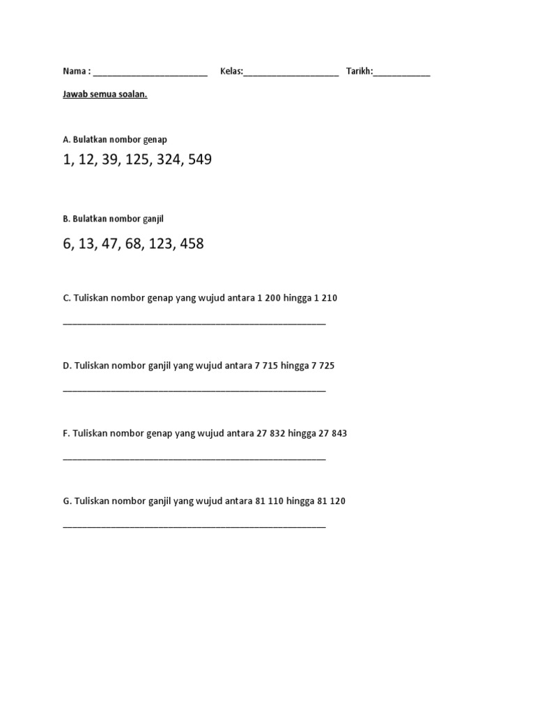 Latih Tubi Matematik Tahun 4 Nombor Genap Ganjil from imgv2-1-f.scribdassets.com Nombor genap yang lain boleh dibahagi dengan 2, jadi ia bukan perdana. If you want to learn nombor genap in english, you will find the translation here, along with other translations from malay to english. Perihal (perbuatan dan sebagainya) menombori (sesuatu). Kelas matematik, bersama cikgu romie @ www.vtutor.cikguromie.net. Tanda yang menyatakan bilangan, angka. Learn the gender of nouns and useful list of masculine and feminine words in english with picture and video. Maksud nombor genap dan alih bahasanya dalam bahasa inggeris. Cari nombor dengan nombor genap penyelesaian leetcode.
