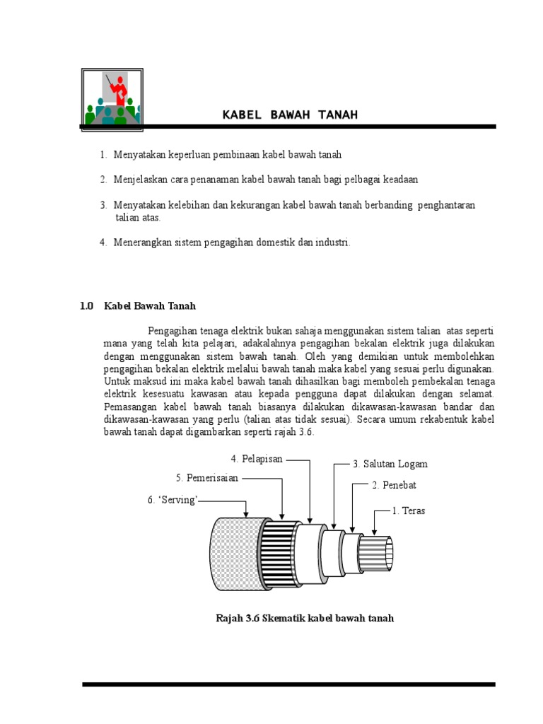 Kabel Bawah Tanah Docx Document from cdn.cupdf.com Electrical and aircond services kerja kerja penyambungan kabel bawah tanah perumahan persendirian. Apakah kabel bawah tanah harus dipasang di bawah tanah? Terdapat beberapa kaedah merentang kabel antaranya ialah : Oct 17, 2016 · penanaman kabel adalah semua jenis kabel yang konstruksinya direka khusus untuk dipasang di bawah permukaan tanah dan dalam pemasangan tersebut ditanam secara langsung dibawah permukaan tanah. Siapa kabel listrik yang digunakan di bawah permukaan tanah? Terdapat beberapa aturan mengenai tata cara pemasangan kabel yang tepat. Tujuannya untuk menjamin keamanan kabel tersebut, membuat usia pakainya awet. Penyambungan dan penamatan kabel bawah tanah dan kemahiran menyambung dan menamatkan kabel untuk kesinambungan bekalan elektrik.